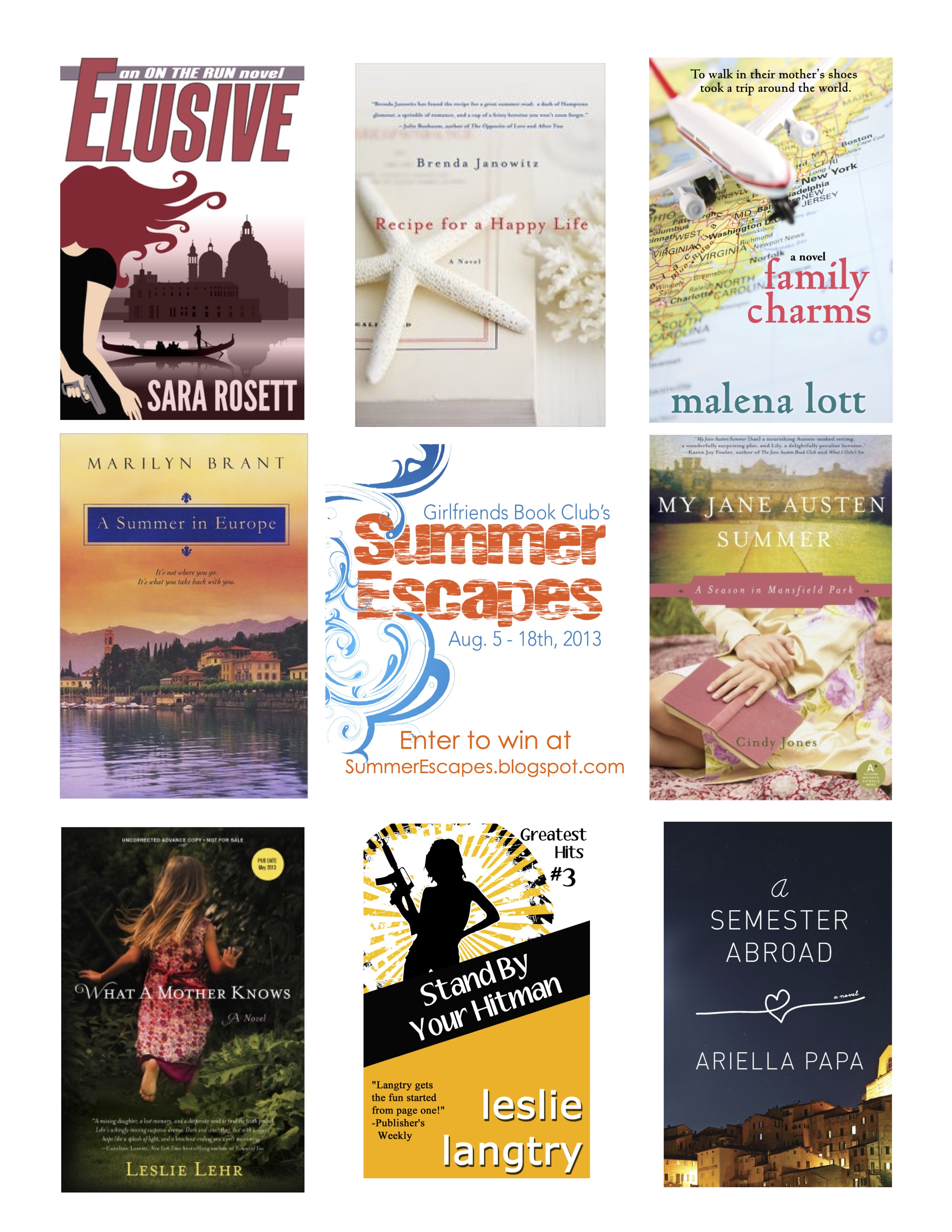 BOOK NEWS: Prizes, anyone? FAMILY CHARMS is featured in two giveaways happening right now. One is with the wonderful Girlfriends’ Book Club Summer Escapes. Register to win an ebook of your choice from the poster each week. Enter here. If you’re on Goodreads, register for a chance to win a paperback copy of FAMILY CHARMS here.