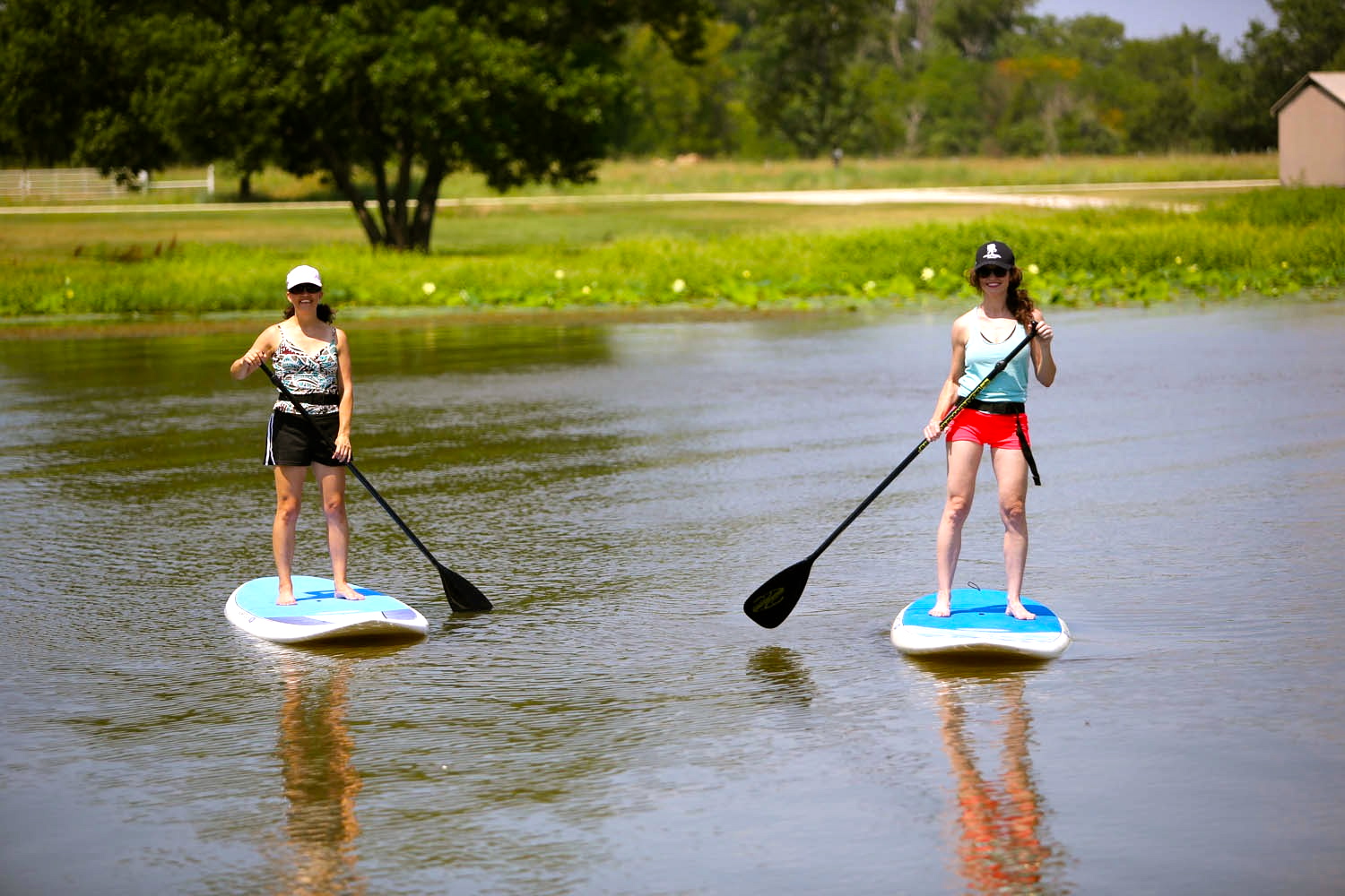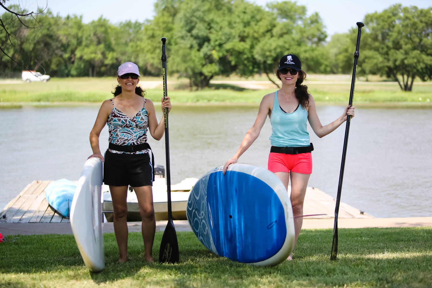 Get Out Adventure 3 – One of my favorite families on the planet is the Davis’ in Wichita, Kansas. Our kids have grown up together and STILL get along. We only had one day that fit our scheds before school started and my friend Deb agreed to try paddle boarding. We went to another town, Augusta, and Ken took some pics of us. In addition to just paddling around the lake, we also stopped over among lily pads and did some yoga on the boards. It was Deb’s first time and my second and neither of us fell in to our amazement. The lily pads helped keep our boards from going back into the middle of the lake. Yoga ON lily pads. In bloom. Freaking cool.