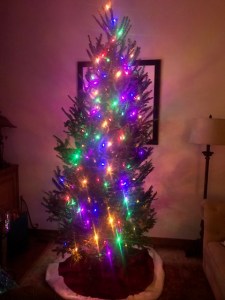 Our crooked, “that’ll do” tree – ready for ornaments. tend to get away from us. I prioritize time with him and the kids when I’m not working so all this holiday “to do stuff” gets pushed to the bottom of the list. I used to just push through and do it no matter how worn out I was. This year, we opted to simply fit things in as we could. This is the epitome of the slow Christmas, because instead of being stressed out or angry that you have to get such-and-such done by a certain date (like being the first one to post your Christmas tree decorated on Facebook!), you do them when you feel all fa-la-la about it! So we just bought our real tree at Lowe’s when only two of the 8 footers were left. It’s curvy, but because we bought it “late” we got it $20 off! We put the lights on it and tonight we’ll be doing our tradition of drinking really good champagne while we decorate it. We only have minimum decorations up and the only lights outside so far is one tree wrapped instead of last year’s four. That may be the only tree that gets some bling this year, and that’s just fine with me! Since we couldn’t get my “sister Christmas” in before the big day, we are celebrating the Friday after. It’s still the “season” so don’t get hung up on one day or when everyone else is making/baking/decorating/partying. Remember, Christmas is NOT a competition. You do you, slowly. Like, now. Unless now doesn’t work for you, then later.So tell me, what else would you add to this list? Do any of these resonate with you? Share in comments!
